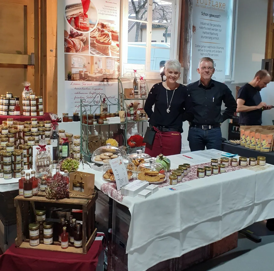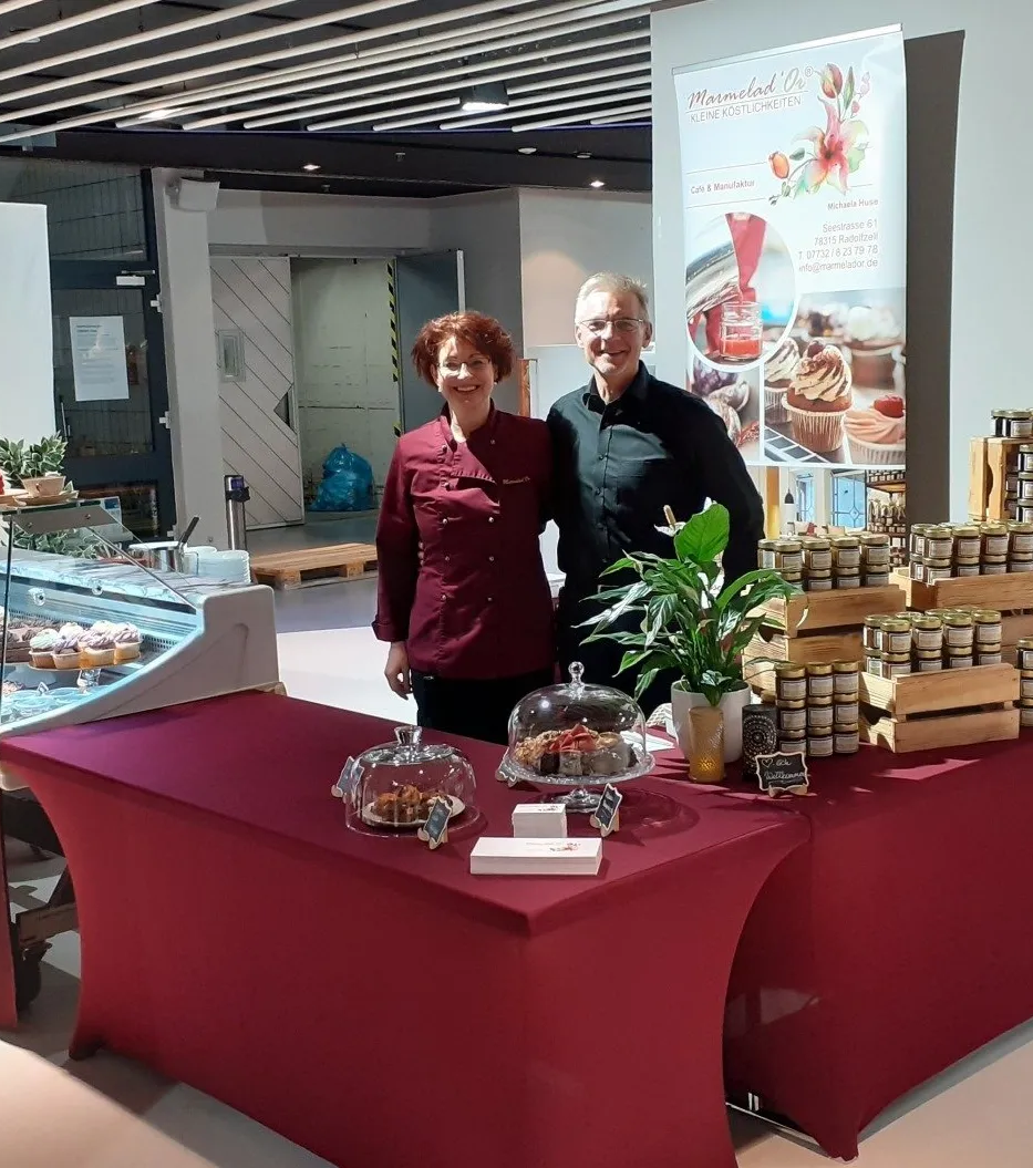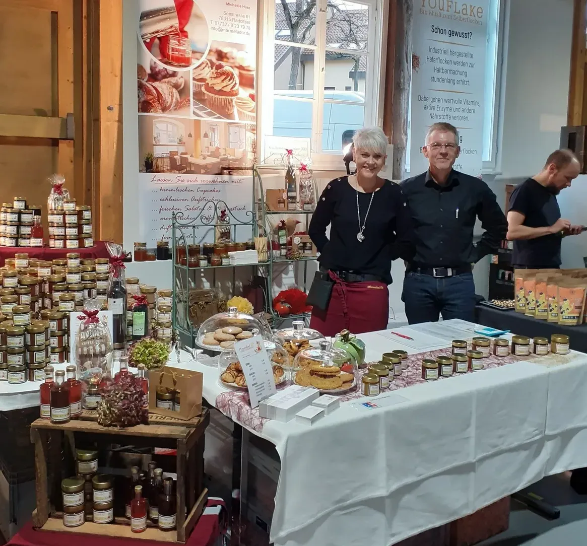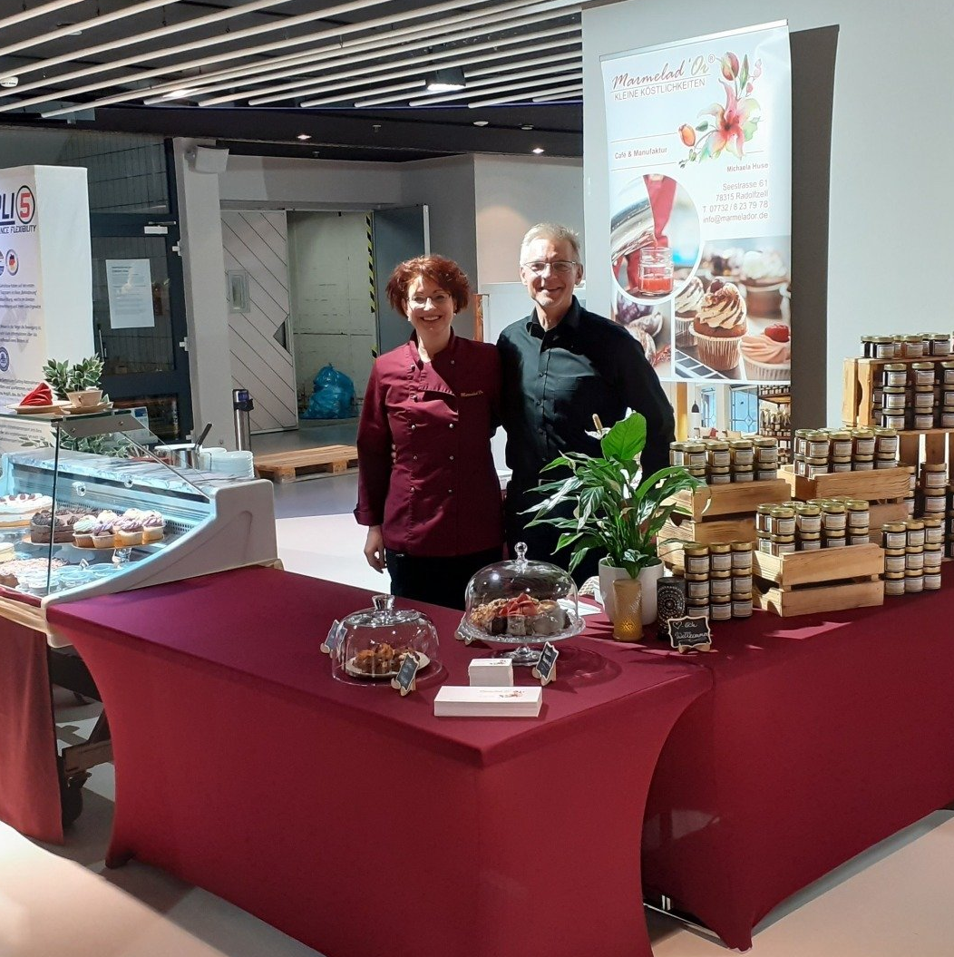 Wir präsentierten uns mit einem Teil unserer Fruchtaufstriche und Gebäcke mit einem eigenen Stand. Die alte Kelter bot ein wirklich tolles Ambiente und das Messeteam vor Ort war sehr nett. Auch die Aussteller selbst waren eine sehr nette Gemeinschaft. Dennoch stellten wir fest, dass wir uns lieber in Radolfzell und unserem Café bewegen und freuen uns schon sehr auf die nächsten Gäste, die bei uns im Café unsere Aufstriche und Gebäcke kaufen und sich von uns verwöhnen lassen.